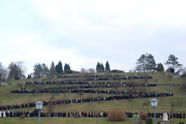 Dok se bistričkom Kalvarijom uspinjala neprekinuta procesija redovnica, redovnika, Bogu posvećenih laika i laika povezanih s redovničkim zajednicama preko svjetovnih redova i bratstava, pjevanje je animirao Redovnički band aid. Pobožnost je zaključena zahvalom koju je svim sudionicima dvodnevnog središnjeg događanja o Godini posvećenog života izrekao predsjednik Vijeća HBK za ustanove posvećenog života i družbe apostolskog života dubrovački biskup Mate Uzinić, potaknuvši ih čuvanje bogatstva karizmi, jer je to zalog budućnosti. (ika/hkvrpp)