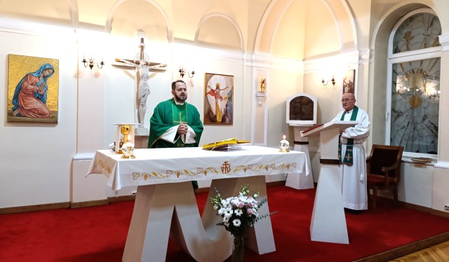 Nakon predavanja uslijedilo je euharistijsko klanjanje pred Presvetim Oltarskim Sakramentom te mogućnost za sakrament pomirenja. Duhovna obnova završena je euharistijskim slavljem koje je predvodio fra Marinko Pejić u zajedništvu s vlč. Markom Hrskanovićem, koordinatorom mjesečnih duhovnih obnova za redovnice u Sarajevu, dok je liturgijsko pjevanje animirala s. Mira Bliznac.