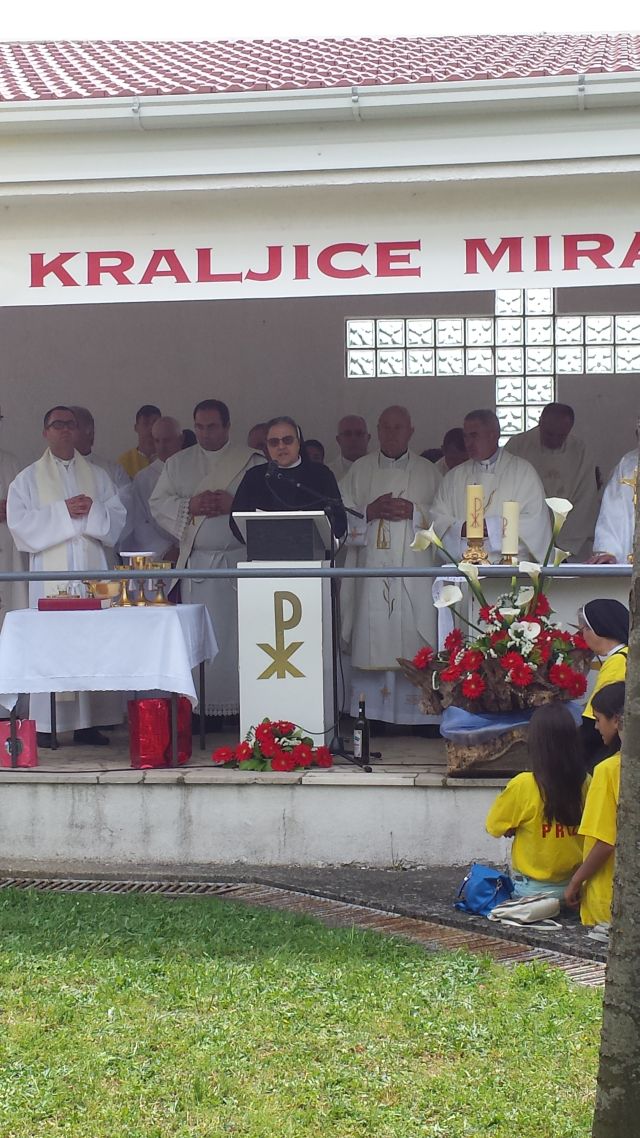 U svom pozdravu biskup Perić je izrazio radost zbog 20-godišnjeg postojanja društva PMI. Prije sv. Mise hodočasnici su krenuli u procesiji do Gradine, gdje je postavljen kip Kraljice mira koja ima ispružene ruke što simbolizira primanje i davanje milosti.