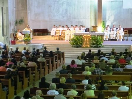Svojom pjesmom misno slavlje je uzveličao zbor mladih framaša, a u liturgijskoj asistenciji su bili postulatni Hercegovačke franjevačke provincije. Nakon evanđelja predsjedatelj slavlja pozvao je nazočne da zajedno ispjevaju psalam 142., što ga je sveto otac Franjo pjevao prije nego se preselio Gospodinu. Psalam je pjevan ‘korski’ u kojem je jedan kor činio prezbiterij, a drugi kor zbor s vjernim pukom. Nakon psalma, fra Antonio je otpjevao antifonu: O presveta dušo, a obred je završio čitanjem izvješća brata Ilije o smrti svetog oca Franje.
