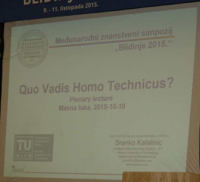 Zatim je profesor bečkog sveučilišta Branko Katalinić održao predavanje pod naslovom "Quo vadis homo technicus?" kojeg su sudionici ocjenili vrijednim i zanimljivim.