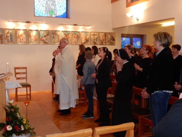 Na Euharistijskom su slavlju sudjelovale sestre iz obližnjih zajednica, vjernici župe Imena Marijina te Prijatelji Maloga Isusa. Tijekom mise upriličen je obred primanja u pripravništvo Društva Prijatelja Maloga Isusa.