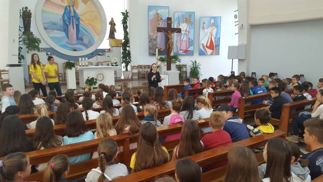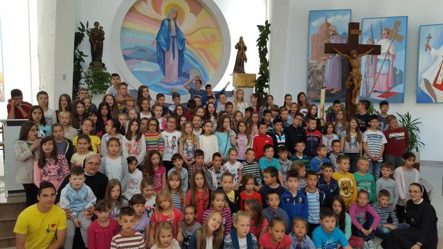 Drugoga dana duhovne obnove u prijepodnevnim satima održana je radionica za osnovnoškolce od prvog do šestog razreda. Na početku susreta djeca su otpjevala pjesmu te započeli s radionicom. Kroz razgovor te odgovore na postavljena pitanja s. Marina je zajedno s djecom promišljala o djelima milosrđa kako tjelesnim tako i duhovnim te im istakla primjer Josipa Stadlera koji je svoj život posvetio milosnom djelovanju. Nakon toga je uslijedio rad u grupama gdje su djeca dobila zadatak da prepoznaju i oboje djelo milosrđa koje je bilo na crtežu predstavljeno. Na kraju susreta animatori, Ivana Miličević, Željo Garić i Dragana Topić, pripremili su nekoliko igara u kojima su se djeca posebno zabavila i nasmijala.