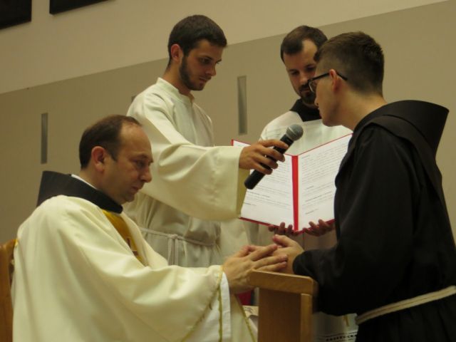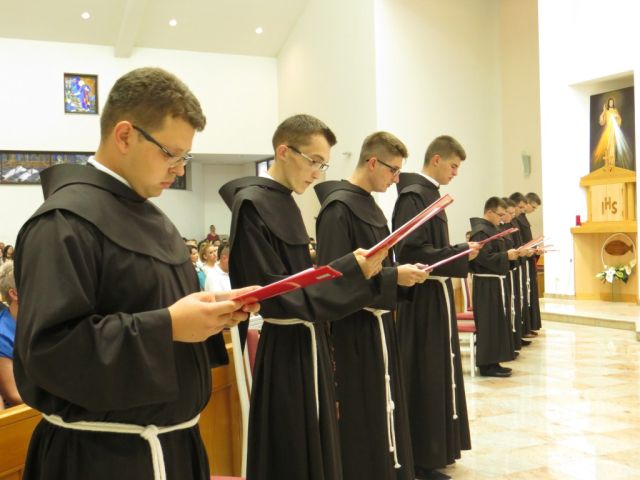 U nedjelju, 10. srpnja 2016., za vrijeme večernje svete mise u novoj crkvi na Humcu osmorica novaka: fra Franjo Ćorić, župa Čitluk,fra Nikola Drljepan, župa Čapljina, fra Josip Duvnjak, župa Šuica, fra Ivan Hrkać, župa Široki Brijeg, fra Daniel Majstorović, župa Drinovci, fra Josip Malić, župa Kongora, fra Franjo Markić, župa Kočerin, fra Ivan Slišković, župa Široki Brijeg položili su svoje prve privremene zavjete na godinu dana u Redu manje braće.