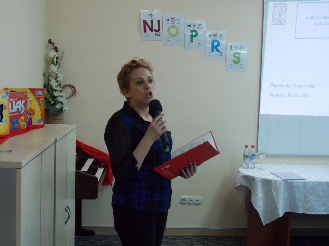 Prof. Jakšić je istaknula kako osobno zadovoljstvo utječe na kvalitetu obavljanja posla, a ono u sebi sadrži smislenost rada, radost učenja i prenošenje znanja na djecu. S druge strane postoje izvori stresa kojem su izloženo odgajatelji: međuljudski odnosi, interakcija s roditeljima, problematična ponašanja djece, radni uvjeti i sl. Očekivanja od života te osobna percepcija stvarnog života često dovode do frustracija, ali važno je sebi osvijestiti da niti prošlost, niti okolina ili tuđe ponašanje ne upravlja osobom iako utječe na nju. Osoba upravlja sama sobom i odlučuje se za ili protiv, svaka minuta života prilika je za izbor. Voditeljica je naglasila važan čimbenik – samopomoć – redefiniranje nerealnih očekivanja; vođenje brige o sebi; dopuštanje drugima da nam pomognu; biti svjestan rizika izgaranja i emocionalnih zahtjeva svog posla; poznavanje vlastitih ograničenja; znati reći „ne“; imati pozitivan stav; biti zahvalan. Istraživanja pokazuju da su zahvalni ljudi – sretni ljudi.