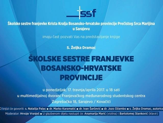 Knjigu o prvoj pisanoj povijesti „Školske sestre franjevke Bosansko-hrvatske provincije“ napisala je s. Željke Dramac, a predstavljena je u dvorani FMSC u Sarajevu.
