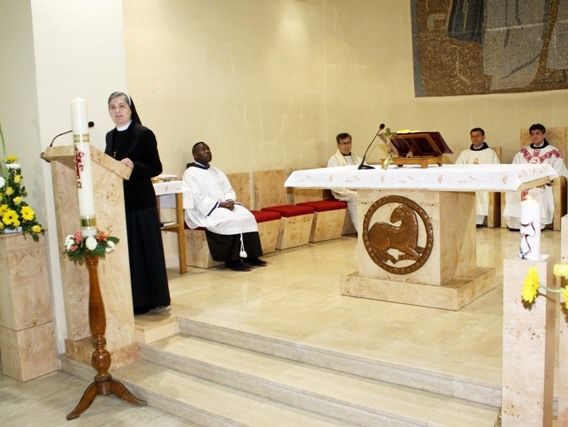 U franjevačkoj samostanskoj crkvi u Visokom u 11 sati započelo je svečano euharistijsko slavlje koje je predslavio fra Jozo Marinčić, provincijal Franjevačke provincije Sv. Križa Bosne Srebrene, u koncelebraciji braće franjevaca. Na početku mise gvardijan fra Franjo Radman je izrazio dobrodošlicu svim sestrama u ime sve braće koji su kroz sestarsko služenje u Visokom mogli iskusiti majčinsku i sestrinsku brižnost i ljubav. Istaknuvši kako brojne generacije visočkih đaka pamte sestre po dobru, svoje obraćanje fra Franjo završio je riječima: „Sestre, dobro došle u rodnu kuću!“ Potom se svima okupljenima obratila provincijska predstojnica s. Kata Karadža koja je zaželjevši svima sretan i blagoslovljen Uskrs izrazila hvalu Bogu zbog ovog povijesnog dana za Provinciju koji želimo proživjeti u ozračju radosti i zahvalnosti. „Ovo je dan koji svoju veličinu, posebnost i svoj razlog radosti pronalazi u tome što ga učini Gospodin!“ rekla je s. Kata te nad daljnjim hodom Provincije zazvala Božji blagoslov: „Neka Bog i nadalje pobuđuje na vjerno služenje sve nas koje smo se na Njegov poziv odazvale. Neka Bog Svemogući obdari našu Provinciju novim duhovnim zvanjima.“ Drugi dio sestarskog zborovanja odvijao se u novom provincijskom sjedištu i novoizgrađenom kompleksu u Sarajevu na adresi Bjelave 85.