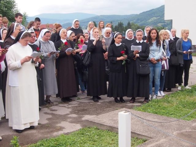 Drugi dan hodočašća obilježen je strahopoštovanjem i tugom kako čovjek može učiniti zlo drugom, nevinom čovjeku. Nakon jutarnje okrijepe zaputili smo se prema Goraždama gdje smo posjetili bivšu vojarnu, sadašnju osnovnu školu gdje smo mogli vidjeti prozor s kojeg su sestre skočile. Pet lampiona stavljeno je na prozor. Uz pjesmu i litanije Blaženicama, ostali smo u šutnji u kojoj smo mogli zazvati Blaženice za njihov zagovor i zahvaliti im na predanju i ljubavi koju su gajile prema svom pozivu i zavjetu čistoće pokazujući nam svojom smrću kako nas ništa ne može rastaviti od ljubavi Kristove. U otajstvenoj tišini, uputili smo se prema spomen obilježju gdje smo stavili cvijeće i svijeće. Molitvom i pjesmom izrazili smo svoju zahvalu ali i molitvu dragim mučenicama. S puno neke nutarnje sjete sišli smo do obale Drine, rijeke koja je postala grobnicom za tolike tisuće nevinih ljudi. Pet sestara iz različitih redovničkih zajednica bacilo je pet ruža u rijeku Drinu u spomen tim velikim ženama. Bio je to zaista ganutljiv trenutak i suza je zaiskrila u mnogom oku. Kao nijeme stajale smo na obali i pratile kako struja nosi cvijeće. Koja simbolika. Sve u nama je čeznulo za smirajem, za šutnjom u kojoj smo željele ponirati u najdublji dio svoga bitka i dati si odgovor kakva je naša vjera, naše predanje i vrednovanje zvanja. Razmišljanje je prekinula tiha pjesma Mučenice ljubavi, koja je ujedno bila i molitva da nas Blaženice nauče kako se za vrednote život predaje.