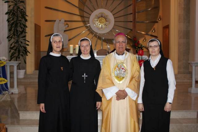 Izražavajući radost što može predvoditi misno slavlje o. Biskup je u uvodu istaknuo kako je misijsko zvanje s. Adriane dvostruko zvanje: i redovničko i misijsko. I jedno i drugo zvanje su milost i veliki Božji dar. Nakon navještaja Božje Riječi o. Biskup nazočnima je uputio svoju pastirsku riječ tumačeći odlomak Evanđelja o Isusovu posjetu kući prijatelja Lazara i njegovih sestara Marte i Marije. Ističući ljepotu ovog odnosa Isusa i njegovih prijatelja, ljepotu božanskog prijateljstva i ljubavi, o spomenu sv. Marte, izdvojio je dvije poruke. Prva je: Ne čini ništa po svojoj volji pa makar se činilo da to činiš za Isusa, da njemu ugodiš! Marta bijaše sva zauzeta posluživanjem, brinula je kako što bolje ugostiti Isusa, odgovorila je u ljubavi, ali nije se pitala što bi Isus htio, kako bi on htio da ga počasti. Pitanje svima nama: Je li to što činimo upravo ono što Isus od nas toga trenutka očekuje, što bi mu se svidjelo,…? I druga poruka: Nemamo pravo Isusu prigovarati! Marta se sprijateljila s Isusom do te mjere da je smatrala da Isusu može prigovoriti: Gospodine, zar ne mariš… Reci joj dakle… Ali Isus joj odgovara: Marija je izabrala bolji dio, Marija je osluhnula ono što Gospodin u tome trenutku želi, traži… Zaručnica sve čini da otkrije želju i volju svoga Zaručnika i da mu ugodi, udovolji! Trajno nam je raditi na usklađivanju svoje volje s Isusovom kao što je i Isus svoju volju usklađivao s voljom Oca nebeskoga.