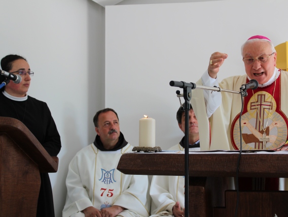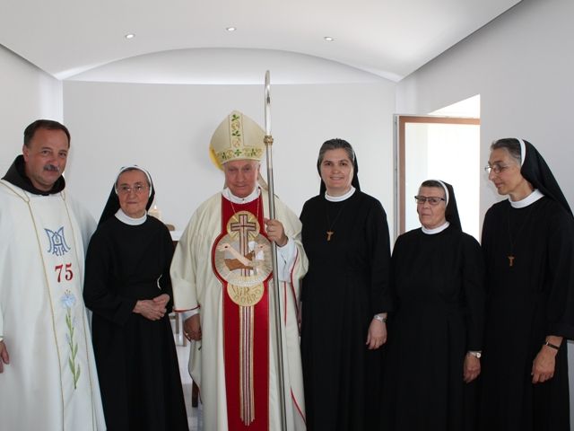 Prije početka euharistijskog slavlja provincijska predstojnica s. Kata Karadža izrazila je svima dobrodošlicu, posebno apostolskom nunciju mons. Pezzutu zahvalivši mu za obred blagoslova koji će obaviti. U uvodnoj riječi mons Pezzuto čestitao je provincijskoj predstojnici i sestrama Provincije, posebno onima koje će živjeti u Fojnici, na obnovi i uređenju kuće. Također je zaželio da sestre, nastavljajući apostolsko poslanje među fojničkim pukom, budu živo svjedočanstvo redovničke obitelji koja svoj izvor i snagu crpi u srcu kuće – kapeli – u svakodnevnom susretu s Gospodinom. Uslijedio je blagoslov vode i škropljenje naroda i zidova kapele, znak svete kupelji koja u Kristu pere i čini hramom Božjega Duha.