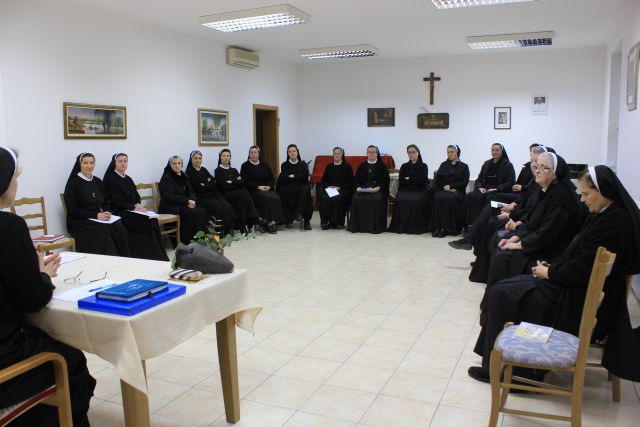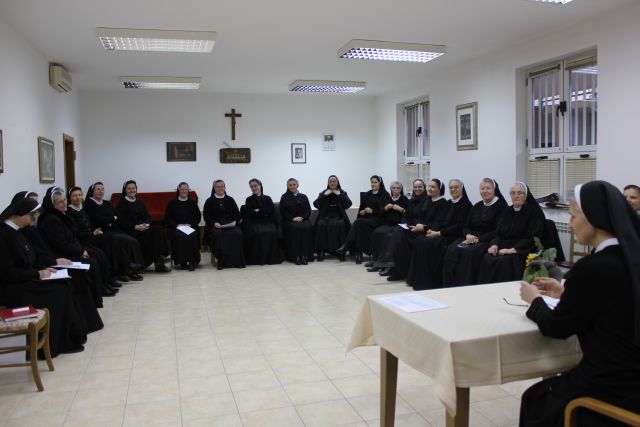 Fra Mladen se obratio sestrama na temu Uloga kućne predstojnice u rastu zajednice. Promišljanje je započeo čitanjem Pohvale mudrosti - svetopisamskog ulomka iz Knjige mudrosti, naglašavajući kako se u tekstu nalazi 21 osobina koju bismo trebali imati svi, napose oni koji predsjedaju zajednici. Zatim je govorio o ulozi i važnosti službe kućne predstojnice za rast zajednice te o potrebnim i poželjnim osobinama koje bi je trebale resiti i kojima bi pridonosila rastu zajednice. Tako je, između ostaloga govorio o služenju, strpljivosti, ljubavi, sućuti, opraštanju, poniznosti, iskrenosti, povjerenju, hrabrosti, slušanju…