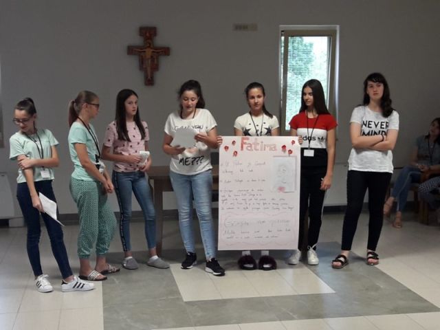 Ovo je kratki opis ovogodišnjeg druženja u kampu u Bijelom Polju koji se održao od 3. do 6. srpnja. Dolazak na kamp odmah je upotpunilo međusobno upoznavanje jedni drugih različitim igrama i metodama. Cilj kampa, kako su nam naše časne sestre objasnile, da budemo zajedno, pomažemo jedna drugoj i zajedno se družimo, počeo je sa svojim ostvarivanjem. Sve smo spavale u istoj prostoriji, igrale igre i sudjelovale u različitim radionicama. U njima smo posebno uživale kuhajući ručak, čisteći kupaonicu, izrađujući i predstavljajući plakate o Lourdu i Fatimi, pjevajući u molitveno-liturgijskoj radionici, a posebno čuvajući djecu u vrtiću. Sve te različite aktivnosti ne samo da su nas zabavile, već su nam pomogle da se što bolje upoznamo i zbližimo i skupa naučimo nešto novo. Kao i u aktivnostima, zajedno smo bile i u molitvi krunice te na Svetoj Misi s kojom smo započinjale svaki novi dan. Smijeha i igre nije nedostajalo, pogotovo na pauzama, izvođenju igrokaza, u večernjim satima koje smo provodile gledajući filmove i u društvenim igrama na svježem zraku.