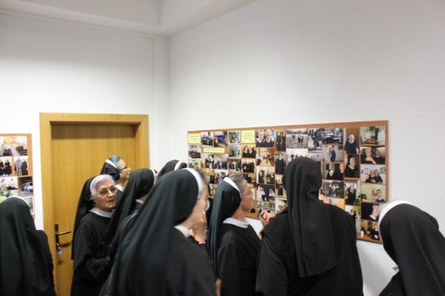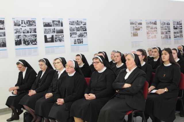Prije razgledavanja izložbe u predvorju samostanske knjižnice s. Natalija Palac ukratko je predstavila sadržaj izložbe što ju je postavila sa suradnicama. Uslijedilo je nešto što se baš i ne može prepričati i što kamere nisu u stanju uhvatiti... gledanje, traženje, divljenje, čuđenje, (ne)sjećanje, (ne)prepoznavanje... dokumenti, novinski članci, fotografije, knjige, suveniri – spomen na 150 i 120 godina života, djelovanja, prisutnosti, prolazeći kroz države i sisteme, tegobe i gorčine, osmijehe i vedrine...