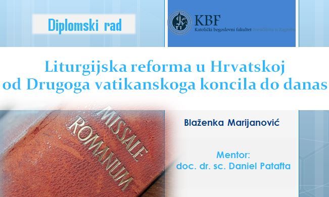 Pod mentorstvom prof. Danijela Patafte s. Blaženka obradila je temu „Liturgijska reforma u Hrvatskoj od Drugog vatikanskoga koncila do danas“.