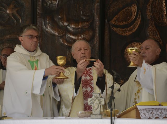 Uz slavljenika na novoizgrađenom vanjskom oltaru koncelebriralo je još 14 svećenika među kojima je bio župnik fra Mirko Filipović, tajnik franjevačke provincije Bosne Srebrene fra Damir Pavić, plehanski gvardijan fra Anto Tomas i derventski dekan preč. fra Ivan Marić.