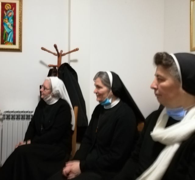 Predsjednik Konferencije viših redovničkih poglavara i poglavarica fra Jozo Marinčić u pratnji provincijske predstojnice s. M. Kate Karadže, provincijalne poglavarice s. M. Julijane Djaković, provincijske glavarice s. M. Ane Marije Kesten, o. Pere Mijića Barišića, SJ i tajnice Konferencije s. Jadranke Obućina posjetio je u srijedu, 17. prosinca 2020. sestre klarise u samostanu Sv. Klare u Brestovskom i sestre karmelićanke u samostanu Bezgrješne Kraljice Karmela u Sarajevu.