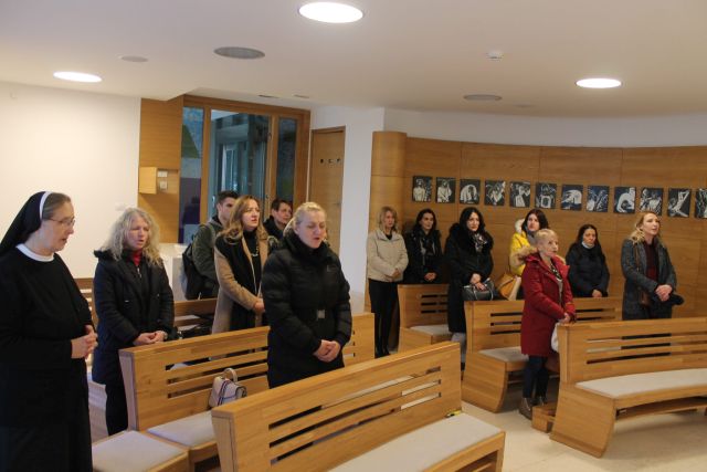 Nakon ugodnih razgovora i osvježenja, djelatnice su posjetile kućnu kapelu gdje im je s. Lidija govorila o njezinom liturgisjko-umjetničkom značenju.