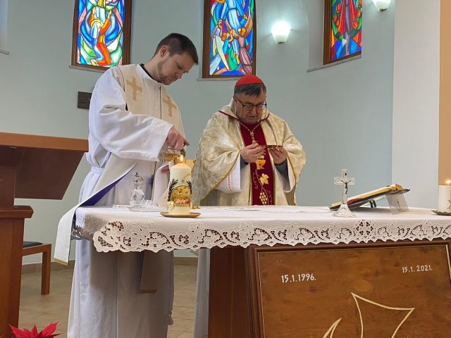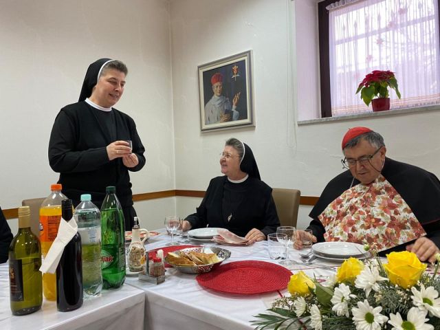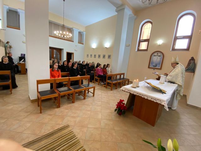 Slavlje je započelo molitvenim programom u kapelici samostana u 11 sati s pjesmom „Još i danas dobri pastir živi“, nakon koje je uslijedio pozdravni govor provincijske glavarice s. M. Ana Marije Kesten. Pozdravljajući gospodina Kardinala i sve okupljene, u zahvalnosti je istaknula: „Jučer, 15. siječnja, navršilo se 25 godina od ponovnog povratka ovog samostana našoj redovničkoj zajednici. Tim danom godine 1996. dosanjan je san mnogih sestara Služavki Maloga Isusa. Za tu veliku milost neka je hvala i slava Malome Isusu!