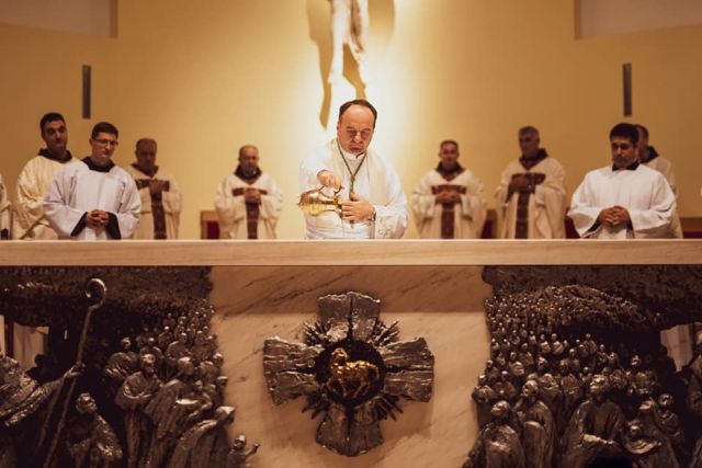 “Potvrdom zazivamo snagu Duha Svetoga dok oltar ove crkve pomazujemo Svetom Krizmom koju smo posvetili na Veliki Četvrtak”, objasnio je biskup Palić koji je sve četiri strane oltara premazao uljem Krizme. Potom je crkveni oltar odjeven u Uskrsnu bijelu boju te su zapaljene svijeće koje simboliziraju svijetlost i prosvjetljenje. Nakon što su svi obredi inicijacije dovršeni, oltaru je dan poljubac mira. Ovim obredom slavi se Crkva – zajednica vjernika, naroda Božjega koji se u crkvi-zgradi okuplja.