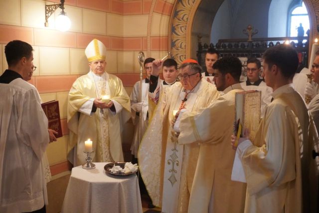 Na početku prigodne propovijedi nadbiskup Vukšić pozdravio je kardinala Puljića, svećenike, redovnike i redovnice, bogoslove i sav okupljeni narod Božji te podsjetio da upravo danas, na blagdan Prikazanja Gospodinova, kojega nazivamo i Svijećnica, pada točno četrdeset dana od Božića. Kazao je da je pored Isusa, u Evanđeljima koja prikazuje događaj Isusova prikazanja, vrlo važan lik starca Šimuna. „Povijesno gledano, Šimun je osoba kontinuiteta između dvaju Zavjeta, između staroga i novoga, između nade i njezina ispunjenja. Ali i duhovno, Šimun je znak kontinuiteta i poveznica dvaju Zavjeta. Šimun je proročka točka koja povezuje i spaja Božje obećanje da će Spasitelj doći i ispunjenje tog obećanja. Jer on svoju ispovijest vjere u nov događaj spasenja u tom času izriče starim riječima proroka Izaije: Ta vidješe oči moje spasenje tvoje (Iz 40,5); Koje si pripravio pred licem svih naroda (usp. Iz 52,10); Svjetlost na prosvjetljenje naroda (usp. Iz 42,6); Slavu puka svoga izraelskoga (usp. Iz 46,13)“, rekao je nadbiskup Vukšić dodavši da je najstariji naziv za ovaj blagdan bio je SUSRET, čime se naznačivala istina da se Isus događajem u hramu u pojavnom smislu susreo s početnom grupom svoje Crkve: Marijom, Josipom i Šimunom.