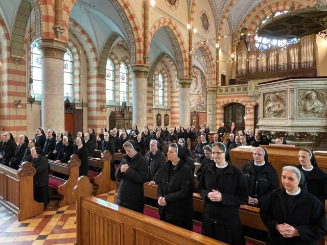 Središnje slavlje Dana Družbe održano je u Sarajevskoj katedrali Presvetog srca Isusova gdje počivaju u miru zemni ostaci njihova Utemeljitelja i graditelja katedrale. Svečanom Euharistijskom slavlju koje je započelo u 10 sati prethodila je molitva krunice i pozdravna riječ vrhovne glavarice s. Marije Banić koju donosimo u cijelosti: