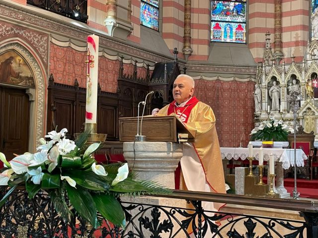 Mons. Pavo je u svojoj prigodnoj propovijedi temeljeći ju na liturgijskim čitanjima progovorio o životu koji je jači od zemlje, stijene, naglasivši da je zadatak života da se probija i raste. To iskustvo stjecali su i Isusovi učenici zbog svoje nevjere da je Isus živ, što su na kraju povjerovali. Stijena na Isusovu grobu nije mogla zadržati živoga Isusa u tami groba. Ustvrdio je kako se svaki čovjek često požali na svoj teret i kamen koji mu stoji na srcu. Često pada tamo gdje bi trebao čvrsto stajati. Ipak, jedan čovjek je čvrsto stao, očitovao se i srušio sve granice koje su postavljene između Boga i čovjeka. Uskrsli je razorio sve ono na što se mi često tužimo. Ovo njegovo djelo mijenjalo je i mijenja sve ljude jer je Bog imao i ima ljubavi za svakoga čovjeka. I mi u Crkvi imamo zadatak da se sve više ohrabrujemo, da gradimo uzajamno povjerenje i promičemo nadu. Pozvani smo kao udovi Svete Crkve pomoći nositi teškoće čovječanstva jer je nada proklijala. Proklijala je u krilu Blažene Djevice Marije koja nam postaje uzor intenzivnog života u Isusu i s Isusom. Jedino Majka Marija nije izgubila vjeru u njega, niti u najtežim trenutcima na njegovu stratištu.