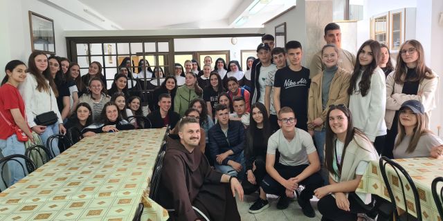 Fra Jozo Hrkać, duhovni asistent Franjevačke mladeži (Frame) Posušje i više od šezdeset framaša posjetili su samostan sv. Klare u Brestovskom 1. svibnja 2023. godine.