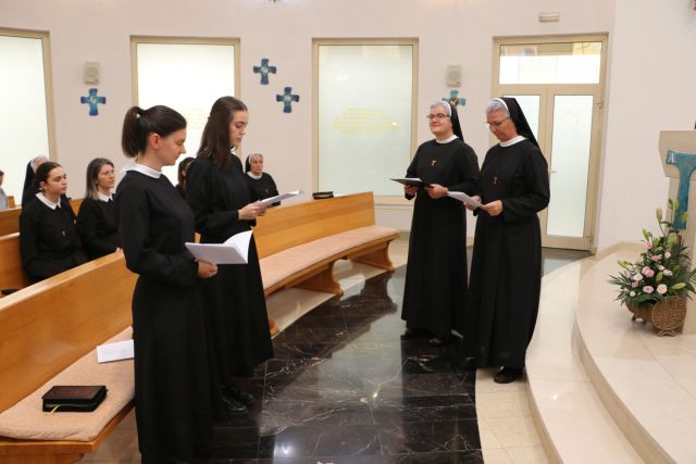 Obred uvođenja u redovnički život za vrijeme "Večernje molitve" predvodile su provincijske predstojnice s. Franka Bagarić i s. Željka Dramac.