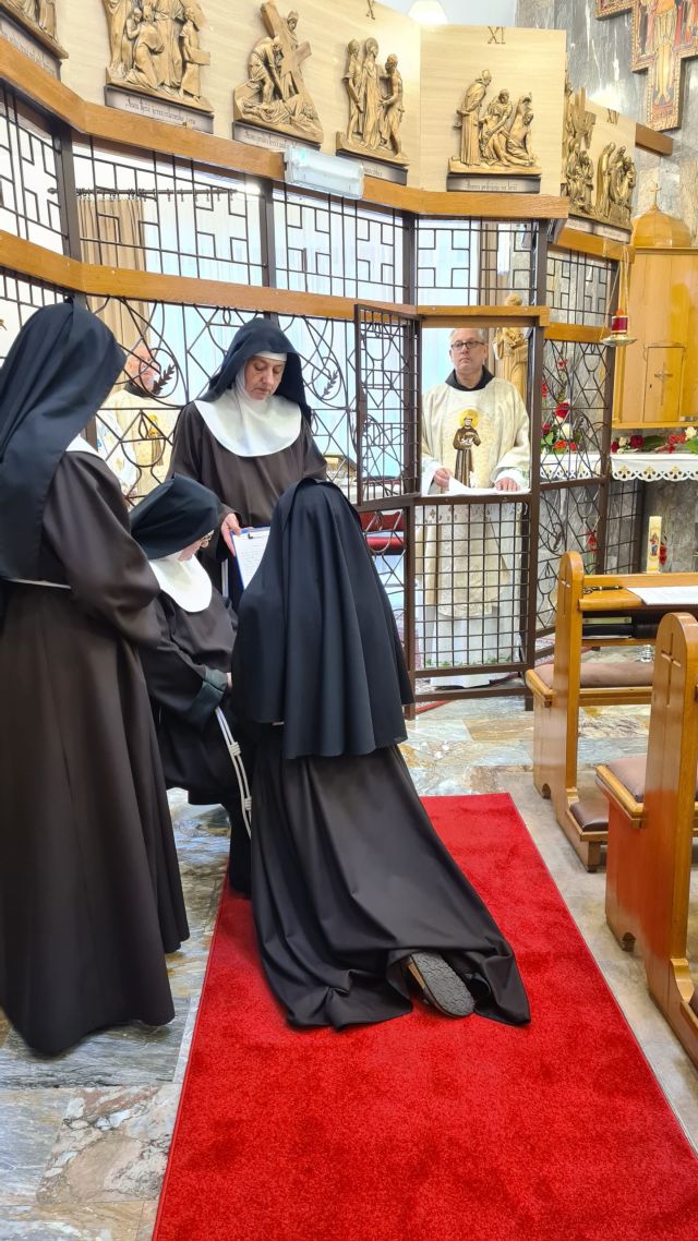 Fra Zdravko je uputio nekoliko poticajnih riječi o važnost i ljepoti kontemplativnog načina života, te je uslijedio sam čin zavjetovanja. Sestra Danijela je potvrdila da je pripravna Bogu se doživotno posvetiti i to svoje predanje simbolički je iskazala činom prostracije. Izgovorila je potom obrazac zavjetovanja pred opaticom s. Hijacintom Batinić. Svečanom blagoslovnom molitvom i predajom prstena, znaka doživotnog predanja, završen je obred zavjetovanja.