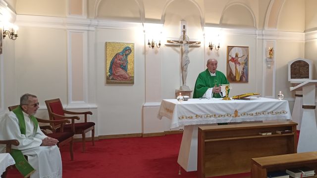 Nakon razmatranja slijedilo je klanjanje pred Presvetim Oltarskim Sakramentom i mogućnost za sakrament pomirenja. Duhovna obnova završena je euharistijskim slavljem koje je predslavio vlč. Marko Hrskanović, duhovnik u Vrhbosanskom bogoslovom sjemeništu i koordinator mjesečnih duhovnih obnova za redovnice grada Sarajeva, u koncelebraciji sa vlč. Marko Stipićem.