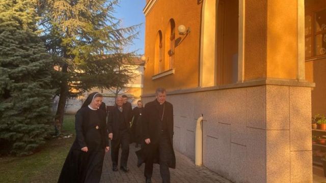 U dvorištu samostana, koji se nalazi u sarajevskom naselju Bjelave, nadbiskupu Vukšiću i nunciju Chullikattu dobrodošlicu je zaželjela provincijska glavarica s. M. Ana Marija Kesten u pratnji predstojnice s. M. Kristine Adžamić i tajnice Provincije s. M. Ljilje Marinčić. Na ulazu u samostan dobrodošlicu su im izrazila djeca Stadlerovog dječjeg „Egipta“ i sestre koje djeluju u samostanu „Egipat“ i u drugim sarajevskim zajednicama.
