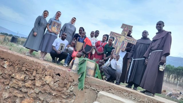 Župnik župe Rushooka fra Aphrodis Rumanyika uz Povelju blagoslovio je simbole (franjevački križ, krunicu i sliku sv. Klare) koji su stavljeni u temelje.