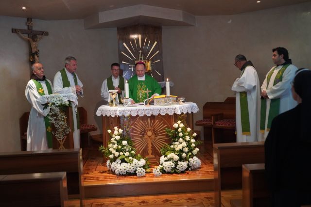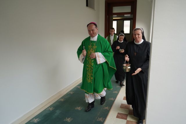 Nakon mise biskup Petar je u nazočnosti sestara blagoslovio samostan, a zajedništvo je nastavljeno u samostanskom blagovalištu. (ŠSF, Mostar)