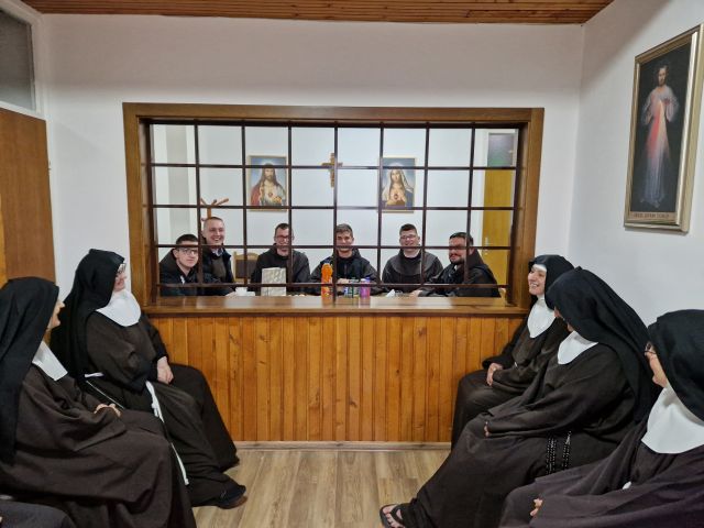 Opatica s. Hijacinta Batinić uputila im je riječi dobrodošlice i izrazila radost zbog ovog susreta. Nakon što su se novaci predstavili i ukratko opisali svoj dnevni red i program novicijata, željeli su znati nešto više o životu u samostanu. U radosnom ozračju razgovaralo se o radu i dužnostima, o putu formacije i novim zvanjima, o motivima ulaska u samostan, osobito najmlađih sestara. Na samome kraju fra Zdenko je zahvalio na gostoprimstvu i preporučio u molitve sestara redovnički put mlade braće. Razišli su se s dubokom zahvalnošću u srcu i obnovljenom snagom na putu nasljedovanja Krista, po uzoru na sv. Franju i sv. Klaru.