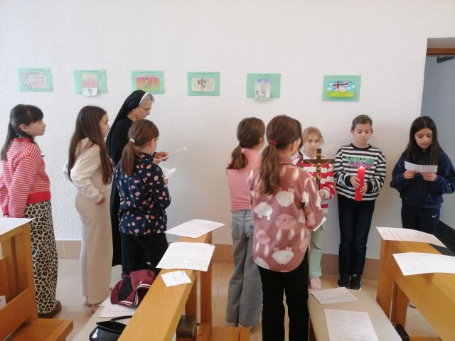 U osobnom radu mladi prijatelji su oslikavali postaje križnog puta koje smo izvjesili u samostanskoj kapelici nakon čega smo molili pobožnost put križa. Molitvu ove pobožnosti pjesmom je animirala s. Dubravka Dropulja, a prvopričesnici su čitali tekst prilagođen njihovu uzrastu. Iako nas sama pobožnost potiče na ozbiljnost, vladalo je svečano molitveno-slavljeničko raspoloženje u hodu i pratnji našega Otkupitelja. Mi sestre molile smo Isusa uz mlade prijatelje, koji su na početku svoga životnog puta, da ih On vodi na njihovu životnom križnom putu.
