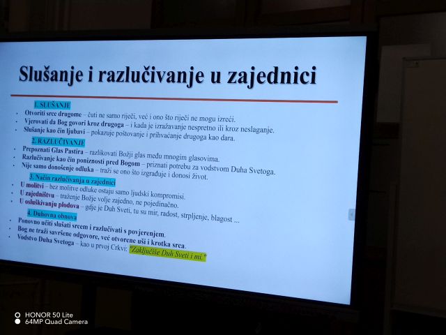 Slušanje i razlučivanje u zajednici – posviješten je poziv na slušanje s ljubavlju i razlučivanje koje nije tek odlučivanje, već čin poniznosti pred Bogom i zajedničko traženje volje Gospodnje.