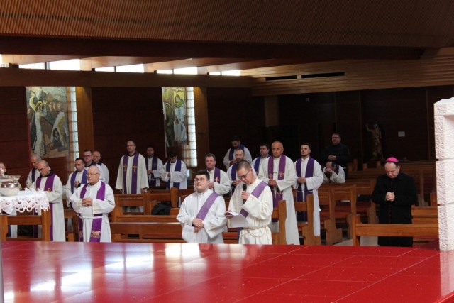 Program je nastavljen pokorničkim bogoslužjem u mostarskoj katedrali, uz prigodu za svetu ispovijed i pobožnost križnoga puta. Središnji dio susreta bilo je euharistijsko slavlje s obredom pepeljanja kojim su svećenici zajednički započeli sveto korizmeno vrijeme.