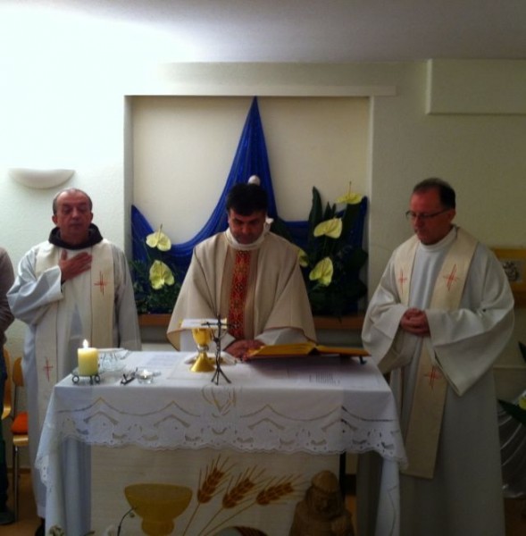 Uslijedila je kratka stanka a u 12.00 sati slavljena je sveta Misa koju je predvodio fra Ivan Sesar, provincijal Hercegovačke franjevke provincije u koncelebraciji s fra Ivanom Prusinom, provincijskim izaslanikom za Švicarsku, predvoditeljem obnove i ostalom subraćom. Propovijedao je fra Mirko naglašavajući kako smo pozvani na obraćenje i oblikovanje novog čovjeka.