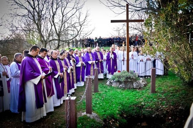 Dana 7. veljače 1945. jednog po jednog od dvanaest hercegovačkih franjevaca komunisti su vodili od samostana do ratnog skloništa, ubili i zapalili. Tom istom stazom, 68 godina poslije, krenula je procesija ministranata, postulanata, novaka, redovnika i svećenika uz molitvu žalosnih otajstava Gospine krunice. Nakon kratkog nagovora i molitve gvardijana fra Sretana Ćurčića procesija je, uz molitvu krunice, ušla u crkvu te zastala na grobu 22 ubijena fratra. Svjetovni franjevci pročitali su tada kratko razmatranje i imena svih pobijenih hercegovačkih franjevaca.