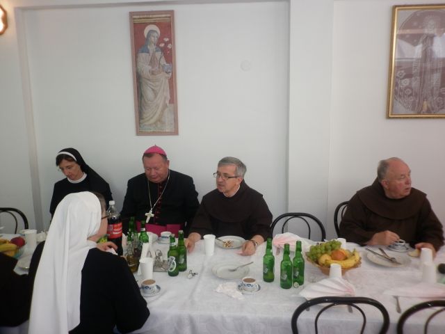 Nakon sv. Mise uslijedio je svečani objed u dvorani samostana. Sve okupljene pozdravio je fra Gabrijel Tomić, biskup Marko Semren, provincijal fra Lovro Gavran, provincijalka s. Ivanka Mihaljević, provincijalka s. Terezija Karača, opatica brestovskog samostana s. Hijacinta Batinić i drugi.