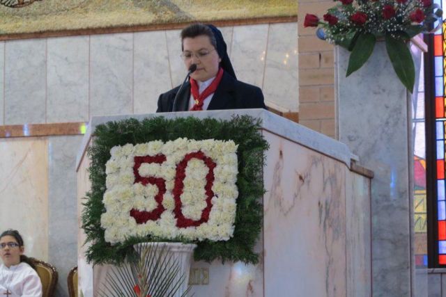 Prije misnog slavlja, prikazan je kroz sliku, riječ i glazbu, život i rad sestara tijekom proteklih 50 godina, a nakon toga sedam djevojaka obučenih u bijele haljine s kaležima u rukama, izmolile su Sedam prikazanja Krvi Kristove. Pjevači i čitači doprinijeli su bogatstvu i ljepoti misnoga slavlja.