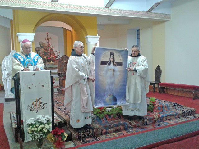 Nadodavši kako je „očitom Božjom Providnošću i Gospinom ljubavlju“ uspio dobiti iz centralnog središta ovu vjernu kopiju originalne slike “Gospe - Majke svih naroda“, biskup Komarica je pozvao vjernike da tijekom ove godine, u kojoj će se na razne načine komemorirati početak užasnih ratova „najkrvavijeg stoljeća u ljudskoj povijesti“ i oni udruže svoje usrdne molitve za mir i slogu među ljudima i narodima u našoj zemlji diljem svijeta.