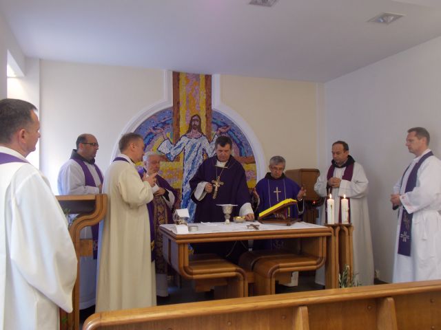 Nakon kraće rasprave, oko podneva euharistijsko slavlje je predslavio mons. dr. Tomo Vukšić koji je, obraćajući se sudionicima Skupštine, u svojoj propovjedi istaknuo kako smo kao različiti udovi Crkve, pozvani izgrađivati jedinstvo naroda Božjega, svatko prema svom umijeću i poslanju, odnosno prema karizmi, na mjestu i službi koja nam je povjerena. Graditi jedinstvo Crkve i širiti dobro treba tako da bi Krist u svijetu mogao rasti, a ne naša slava, ne slava naših zajednica, provincija, biskupija. Slava dobra, plemenitosti i svetosti koje ujedinjuju Božji narod, zaključio je mons. Vukšić.